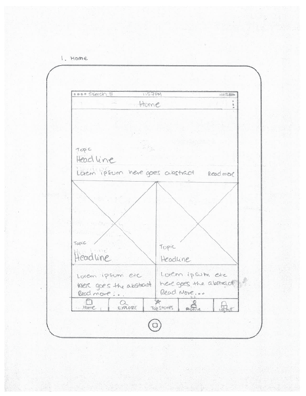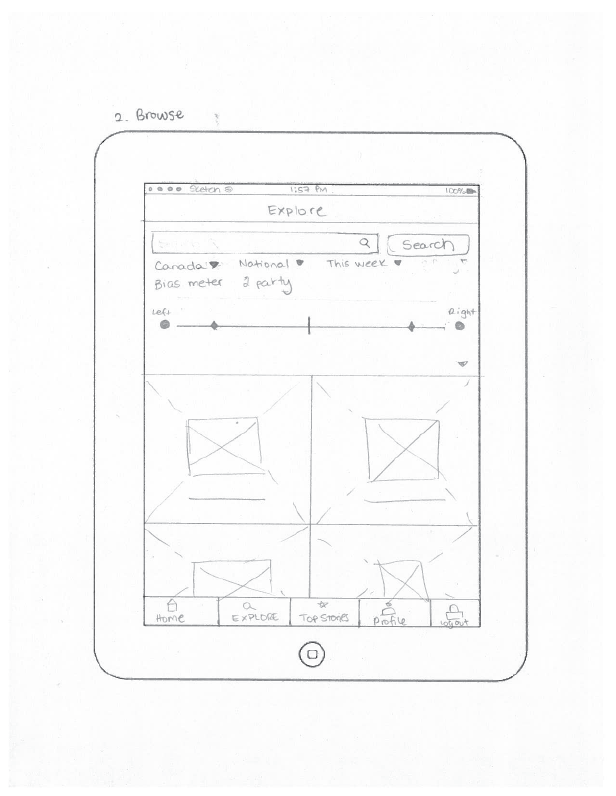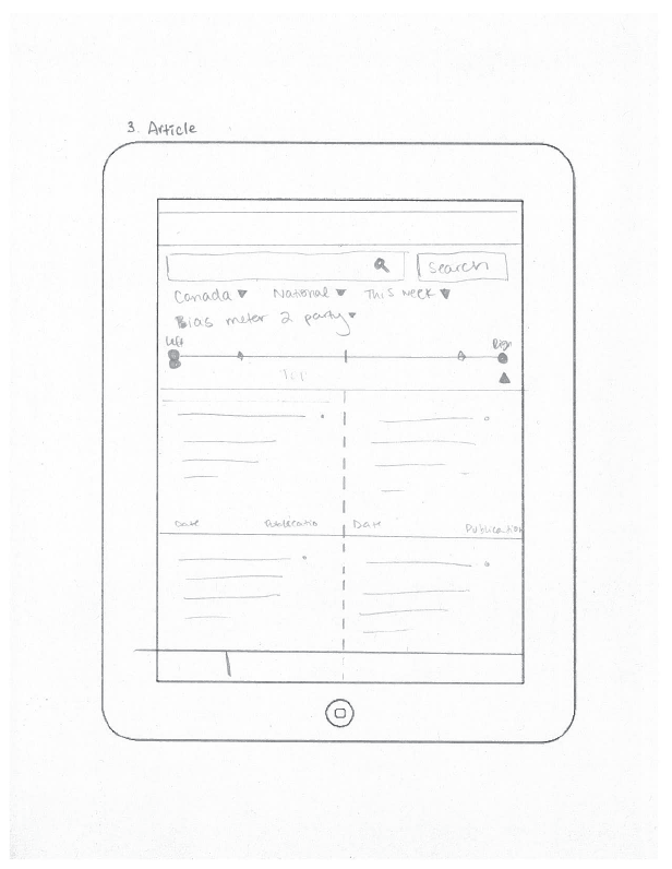The earliest version of our design included a left and right side that drew from more than 50 publications and automatically adjusted one side to match the other as users scrolled through news stories from a particular topic. This is a link to the Lo-Fi Prototype.